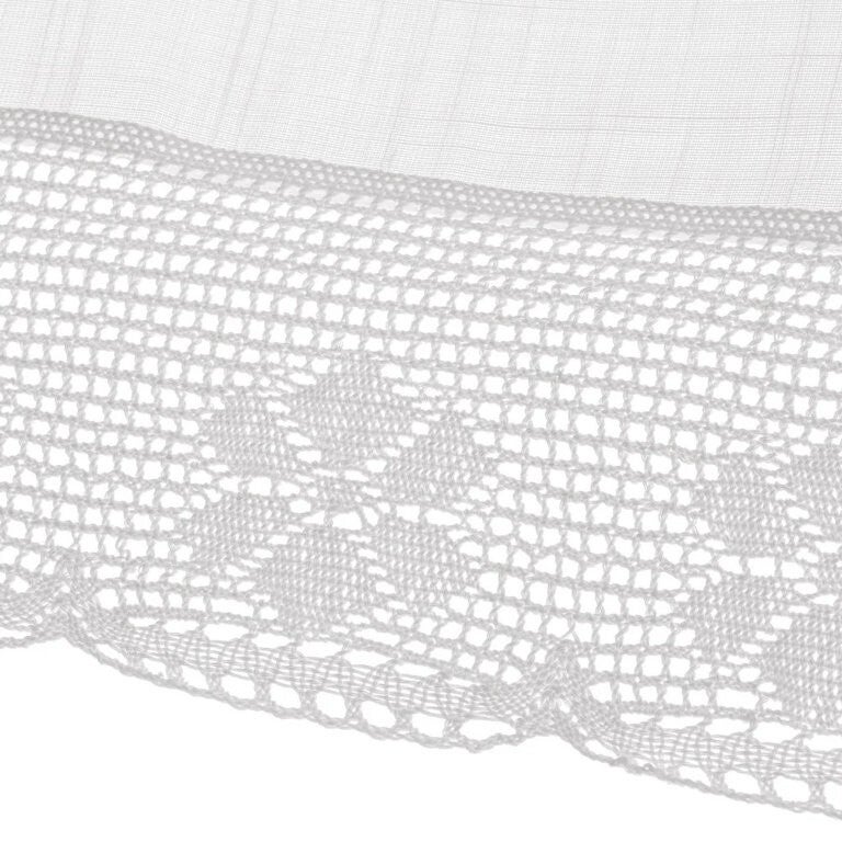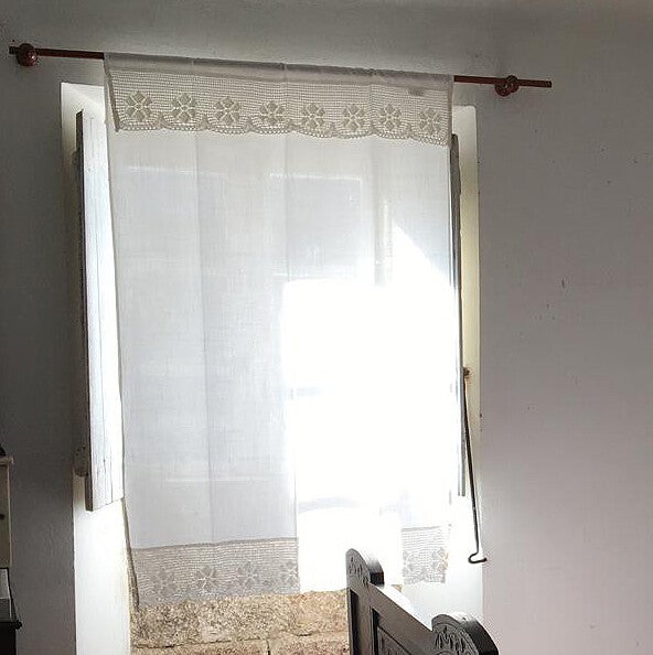 Bonitas cortinas en color blanco, de estilo tradicional, decoradas con puntilla y entredos de guipur.